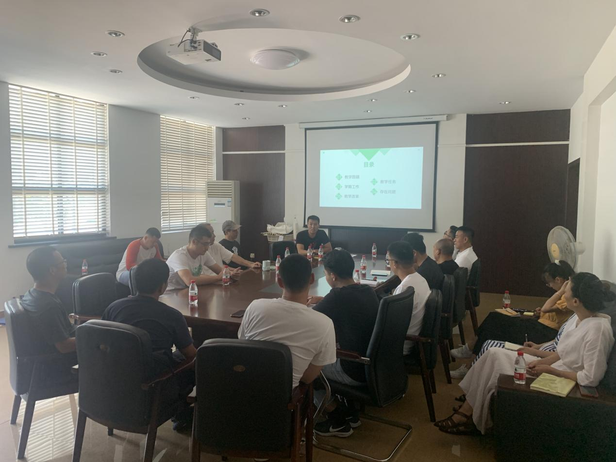 新学期开学之际,公共基础部体育教学部于9月2日周四下午在体育馆111会议室召开了期初教学工作会议。体育教学部9名专任教师及9名外聘教师共18人参加。