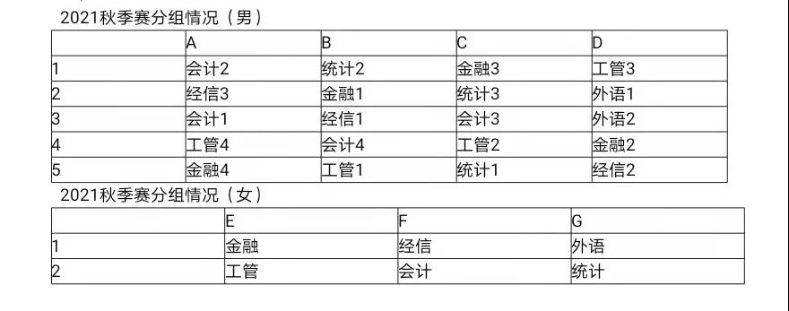 最终晋级淘汰赛的八支球队分别是会计一队、会计二队、工管一队、金融一队、经信二队、会计三队、统计一队,外语一队。