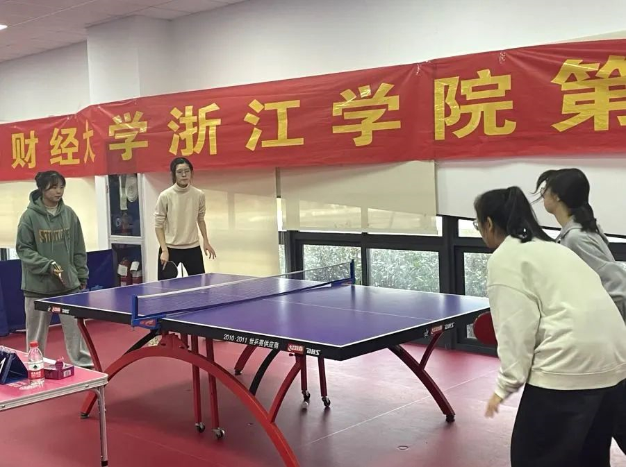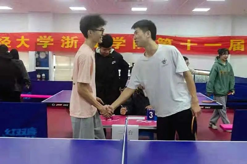 上海财经大学浙江学院第十一届乒乓球赛历经四天的紧张激战后圆满落幕。比赛形式分为个人赛、团体赛。比赛中,各系队员各显神通,以高超的球技展现体育风采,尽显“乒”搏精神。