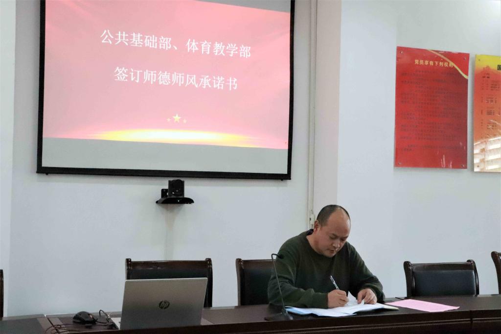 为全面加强师德师风建设,健全师德建设长效机制,引导广大教师以德立身、以德立学、以德施教、以德育德,也为了更好地推进我部门的师德师风建设,引导全体教师加强自我修养、潜心教书育人,树立良好师德形象,努力办好人民满意的教育,12月9日下午,上海财经大学浙江学院公共基础部体育教学部组织全体教师在28-118党员之家开展了师德师风承诺书签署活动。