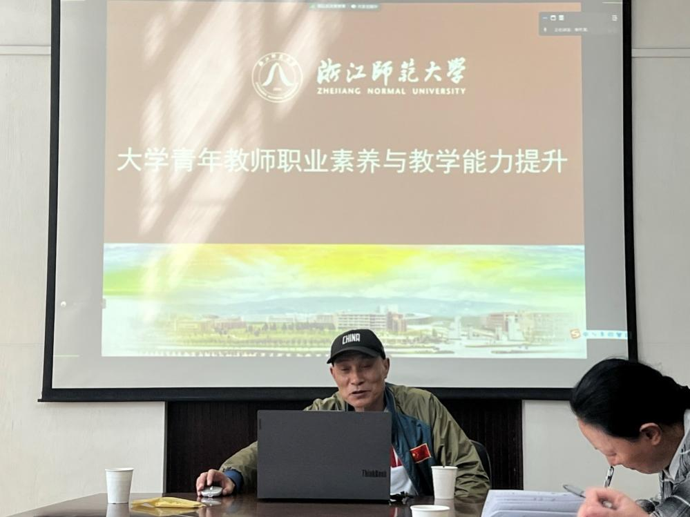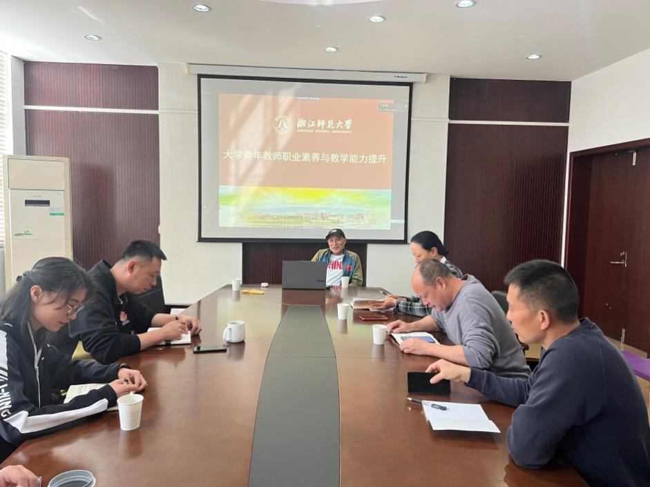 4月27日浙江师范大学教授王章明莅临我部对体育教研组全体教师开展大学青年教师职业素养与教学能力提升讲座。本次讲座采用线上、线下相结合的方式进行,由公共基础部、体育教学部副书记刘荣华主持。