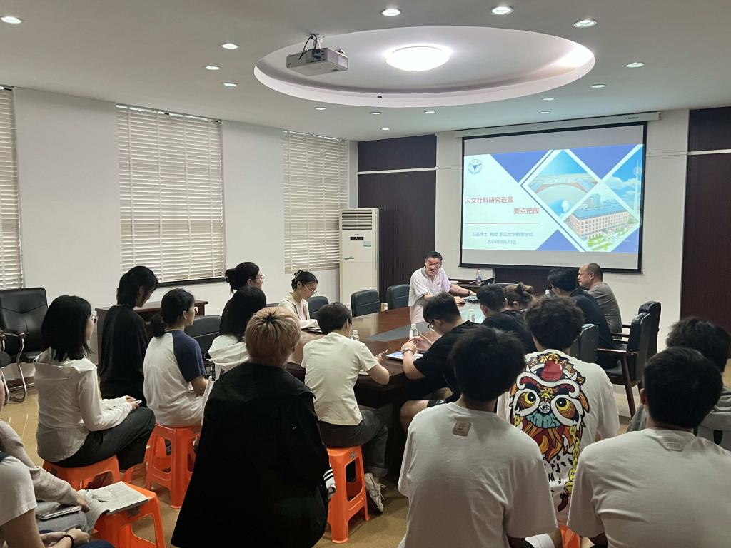 2024年6月21日,于体育馆111党员之家,我们有幸邀请到浙江大学教育学院的资深教授、博士生导师王进教授,为我校师生举办了一场主题为“人文社会科学研究选题要点把握”的学术讲座。此次讲座吸引了较多的专任教师和对科研感兴趣的学生参与,对促进我校学术氛围的深化和科研能力的提升起到了积极作用。