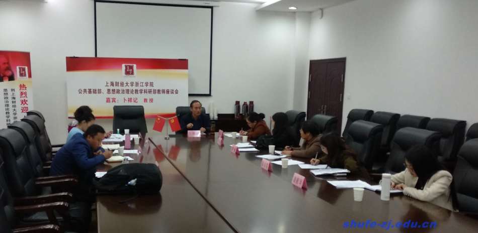宾主寒喧之后,双方落座。卜祥记教授先是简单介绍了上海财经大学思政教学的基本情况。接着,卜教授指出,讲好思政课的关键在深厚的学术积淀。讲课既要紧扣课本逻辑体系,但同时要有问题意识,要结合学术前言来讲解每一个理论。这是改善教学效果的一个重要方法。卜教授还介绍了其它院校的一些做法,比如可以采用专题教学。专题的设计要以问题为导向。 卜教授讲解完毕,接着宾主开展了热烈的互动。大家纷纷表示卜教授的关于思政教学经验的介绍犹如醍醐灌顶,让人豁然开朗。