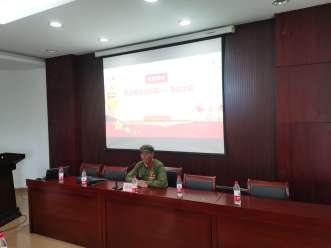 先进模范进校园——老战士篇是本次活动的第四个议题。为完成这一议题,支部邀请了对越自卫反击战盛寿禄同志为大家做爱国主义的主题报告。盛寿禄同志1955年7月24日生于金华,是金东区多湖街道西盛村人,曾担任过西盛村书记,1976年应征入伍,1978年11月入党,后任班长职。1979年2月17日,参加对越自卫反击战。盛寿禄一家7位党员,其中6位从军,可谓忠义之家。从军期间,盛寿禄同志荣获营嘉奖一次,连嘉奖三次。2021年4月,被金华市退役军人事务局聘为“八婺英烈红色宣讲团”讲师。