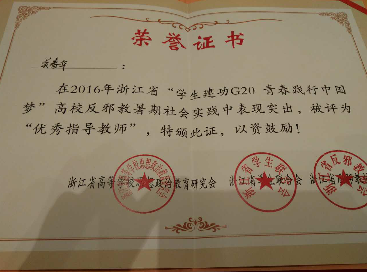 我院由统计系、公共基础部共同组织的“壹陆同行”实践队参与了此次实践活动,并在我校程海艳、关春华等多名老师的精心指导下,我院“壹陆同行”反邪教实践团队在全省50多支高校实践团队中脱颖而出,喜获一等奖。关春华老师被评为优秀指导老师。