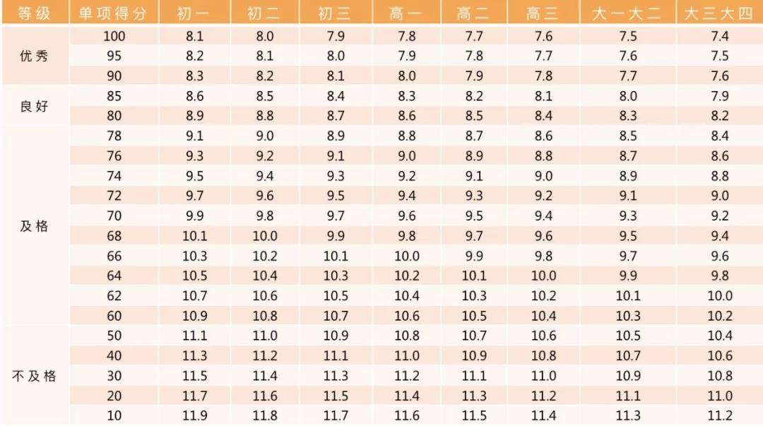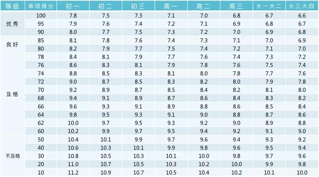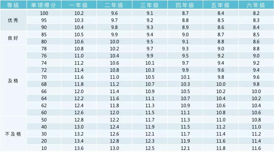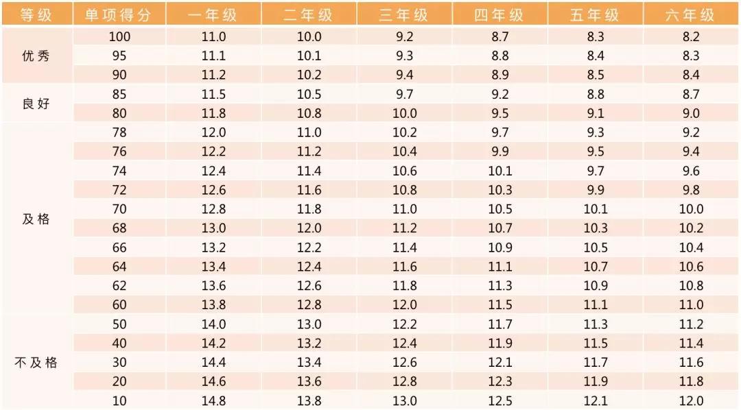 小学男生评分标准