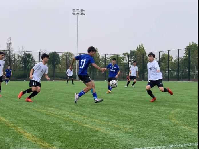 在11月1日,上海财经大学浙江学院迎战宁波诺丁汉大学,作为校队队史的第一场比赛,我们的队员们每球必争,与诺丁汉的队员们展开了激烈的拼抢,尽管开场十分钟被诺丁汉攻入一球,但这也激起了校队队员们进攻的斗志,全场比赛我们将诺丁汉牢牢压制在对方半场进行进攻,而宁波诺丁汉大学也加大了侵略性,屡屡对我方球员造成犯规,但是球员们并没有因此失去进攻欲望,不断控制比赛节奏,最终在八十分钟由队长黄竣威在中场拦截后连过三人送出助攻,左边前卫闫森冒稍作调整直接打门,皮球从诺丁汉的近角打进,完成绝平,这粒进球也成功保留了获胜希望,在剩下的十分钟里我方队员愈战愈勇,不断给对方施加压力,但最终双方也没有产生进球。九十分钟比赛战罢,进入点球大战,在点球大战中,我方队员闫森冒、温永琪、黄竣威、前三罚稳稳命中,我方门将朱佳明神勇扑出诺丁汉两粒点球,最终由吴崇凡罚进最后一粒点球杀死比赛,以常规时间1:1,点球大战4:1的比分成功击败宁波诺丁汉大学,小组出线。然而我方也付出了惨重的代价,多名球员因伤病被换下。九号球员吴超在对手球员前后夹击时遭受肘击眼部肿胀,八号球员鲍钟玉遭到对手球员踩踏脚踝肿胀,十九号球员陈坤龙在进攻时遭到对方球员侵犯后受伤,七号球员张皓天在防守时与对方球员激烈碰撞头部与腿部受伤。