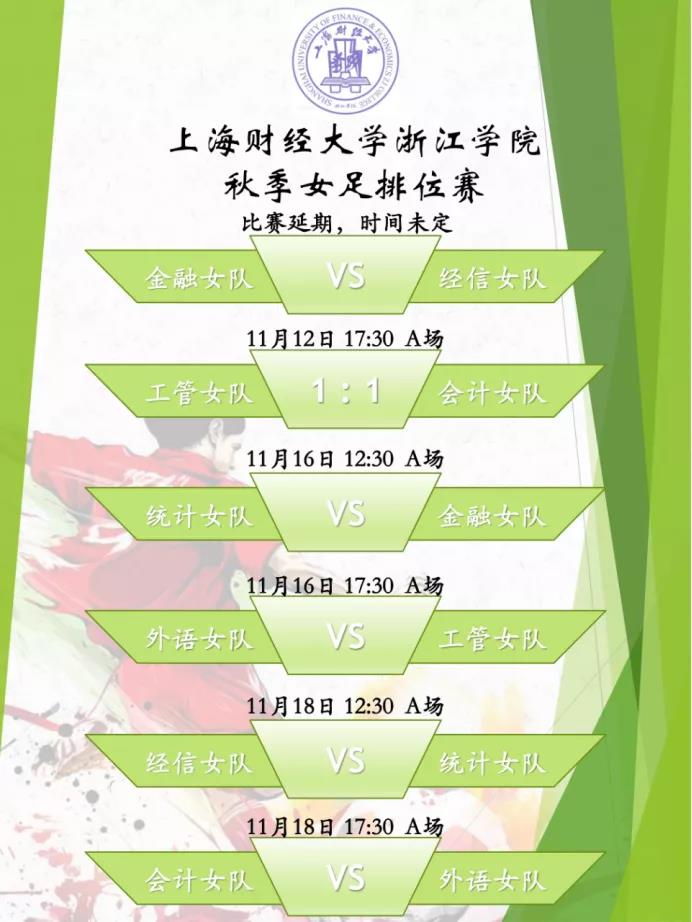 10月18日,小组赛首轮正式开战,对阵双方分别是会计二队和经信三队,双方为大家献上了一场精彩的对攻大战,也为秋季联赛拉开了大幕。26天的时间里,二百多位参赛球员为大家送上了43场精彩的比赛。最终有八支队伍顺利拿到淘汰赛的门票。值得一提的是,本届秋季联赛是财浙自建校以来规模最大的一场足球赛事,联赛首次引入了女足联赛,迎来了六支来自不同系别的女足队伍。同时,本次联赛也采取了校队成员出任教练的形式带队比赛。财浙校园足球正在朝着“人人有项目,班班有队伍,月月有比赛”的目标稳步向前!