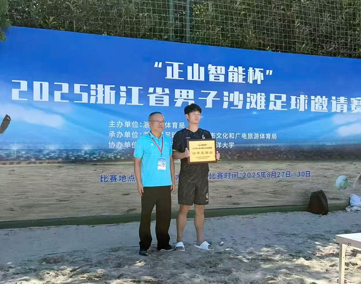 2025年8月27日至30日,“正山智能杯”浙江省男子沙滩足球邀请赛于浙江海洋大学舟山校区沙滩足球场成功举办。上海财经大学浙江学院男子足球队团结一心、顽强拼搏,最终荣获赛事第四名及“公平竞赛奖”,取得竞赛成绩与精神文明双丰收。