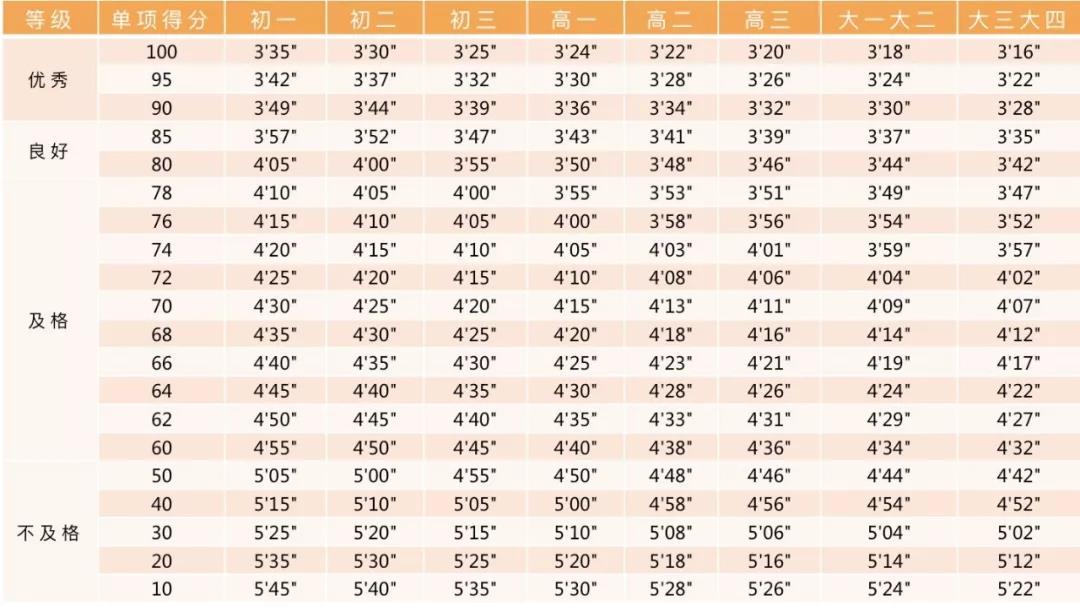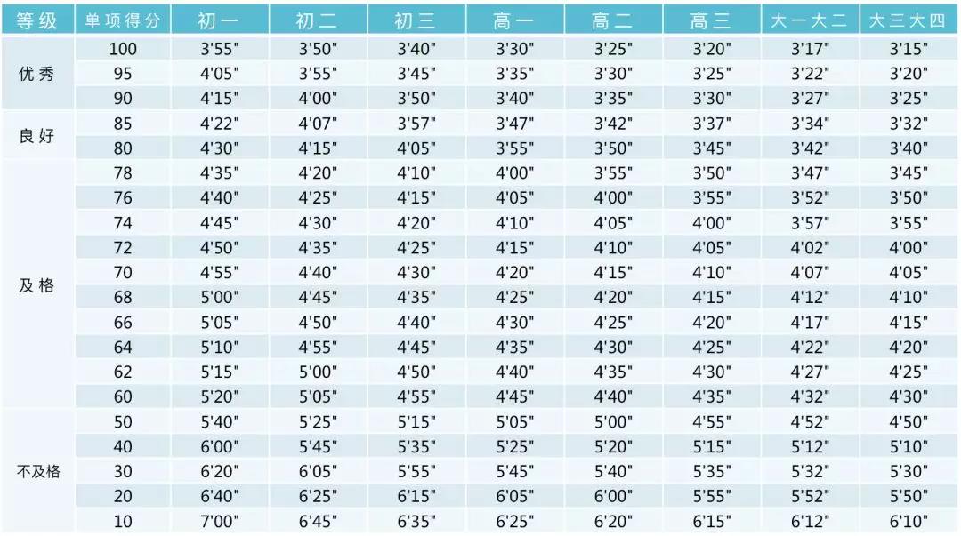 800米跑测试适用于初中至大学各个年级的女生,1000米跑测试适用于初中至大学各个年级的男生。