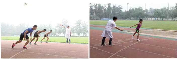 400米跑、800米跑、1000米跑采用发令旗,口哨和秒表进行测试。