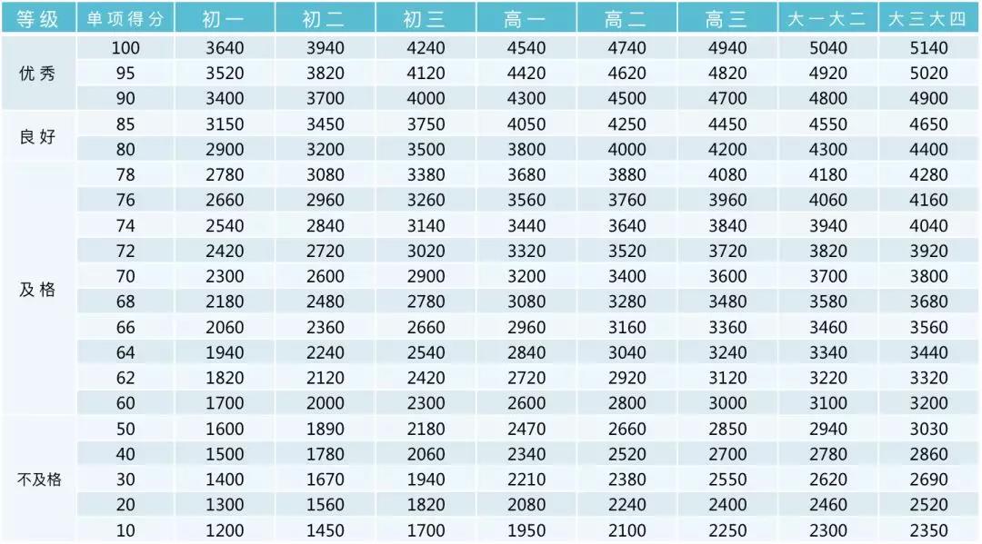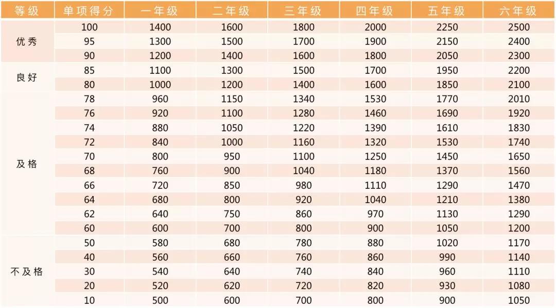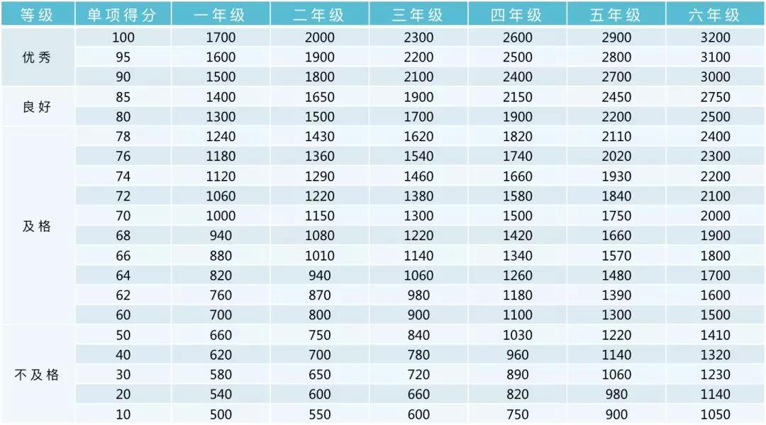 小学男生评分标准